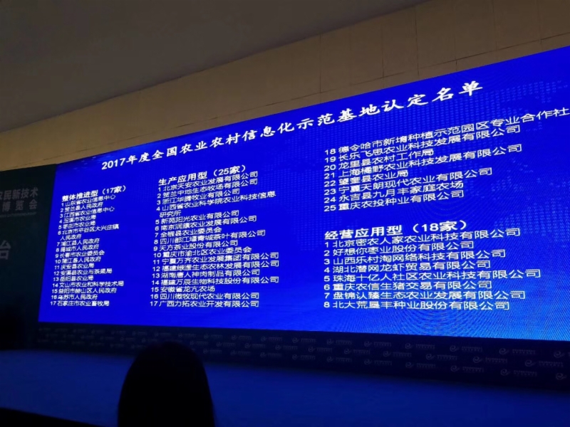 按要求,农业部组织开展了2017年度全国农业农村信息化示范基地认定工作,经农业部专家评审等程序,按照整体推进型、生产应用型、经营应用型、政务应用型、服务创新型、技术创新型六类,认定104家单位为2017年度全国农业农村信息化示范基地,其中整体推进型示范基地17家。