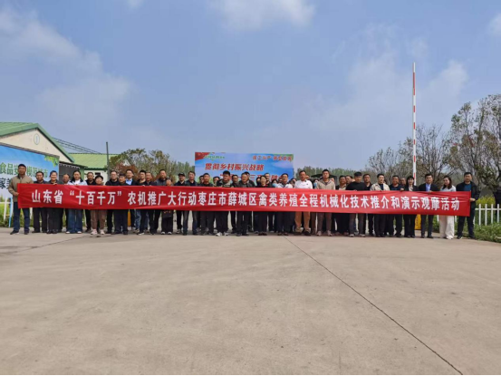 为加快禽类养殖全程机械化技术推广应用,4月10日,山东省“十百千万”农机推广大行动禽类养殖全程机械化技术推介与演示观摩活动在枣庄市薛城区成功举办。山东省农机技术推广站养殖机械技术室主任邱韶峰,市农业农机技术推广中心有关负责同志,市、区农机、畜牧技术人员,合作社技术骨干,畜牧养殖大户代表等80余人参加活动。